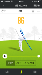 これで良くなったのは、テンポだった。今までは、Zeppのスイングアナライザーで、計測すると、バックスイングの時間対ダウンスイングの時間は5:1ぐらいになってしまう。PGAの平均は3なので、バックスイングがゆっくりすぎる。このスイングなら、3台が出るようになった。