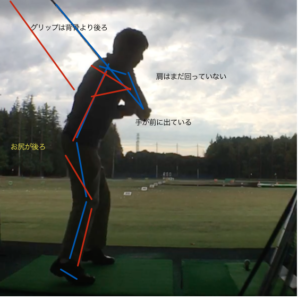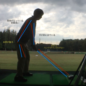 ハンドダウンを小さめにするように最近はアドレスしているが、お尻が出ているようには思えない。次回、練習場で、確認してみよう。